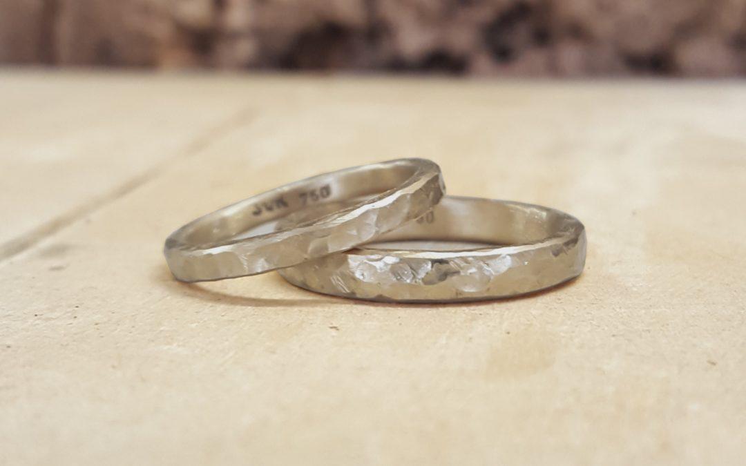 Dünne Hammerschlagringe mit Kugelhammerschlag in nussfarbenem Sandgold von Susanne Krist | Feb. 8, 2024