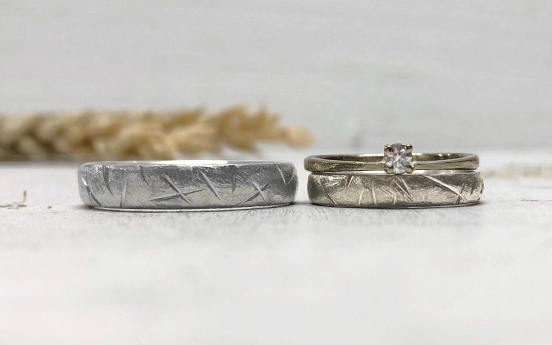 Platin und Cremeweissgold Trauring Kombination mit Vorsteckring und Kerbholz von Susanne Krist | Feb. 8, 2024