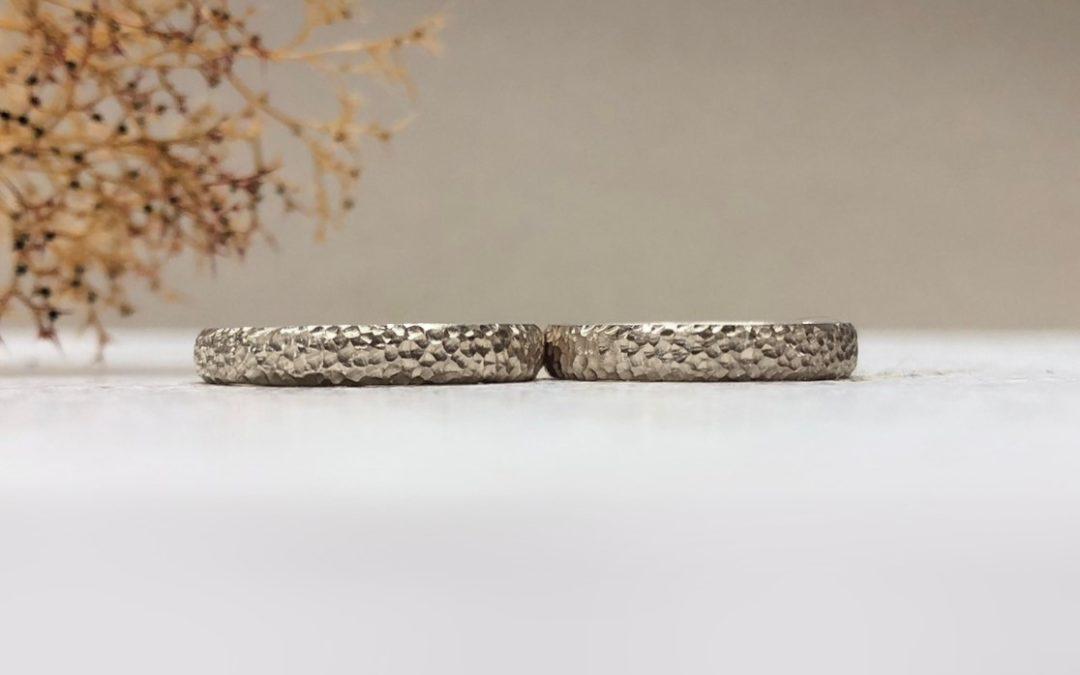 Weisse Ringe mit kleinen Punkten ohne Steine mit Tüpfelmuster geschmiedet. von Susanne Krist | Juli 6, 2024