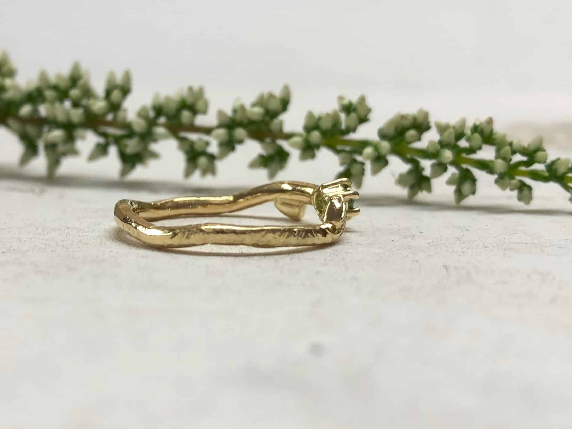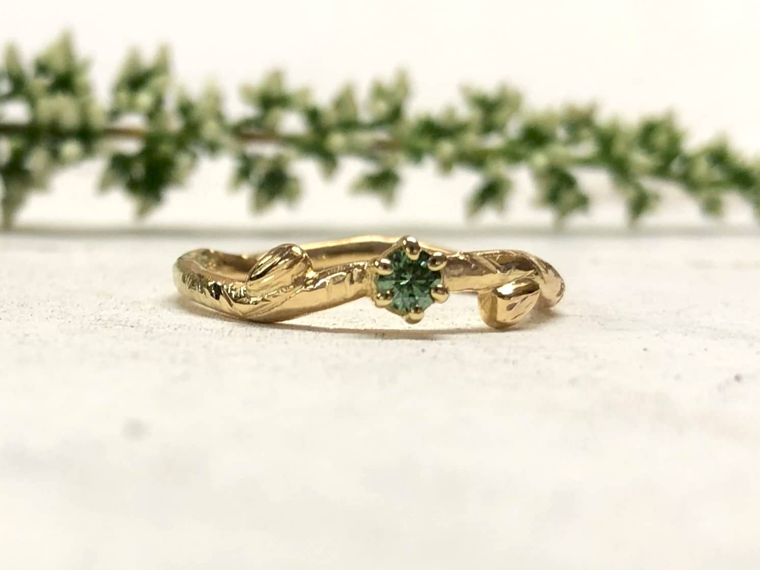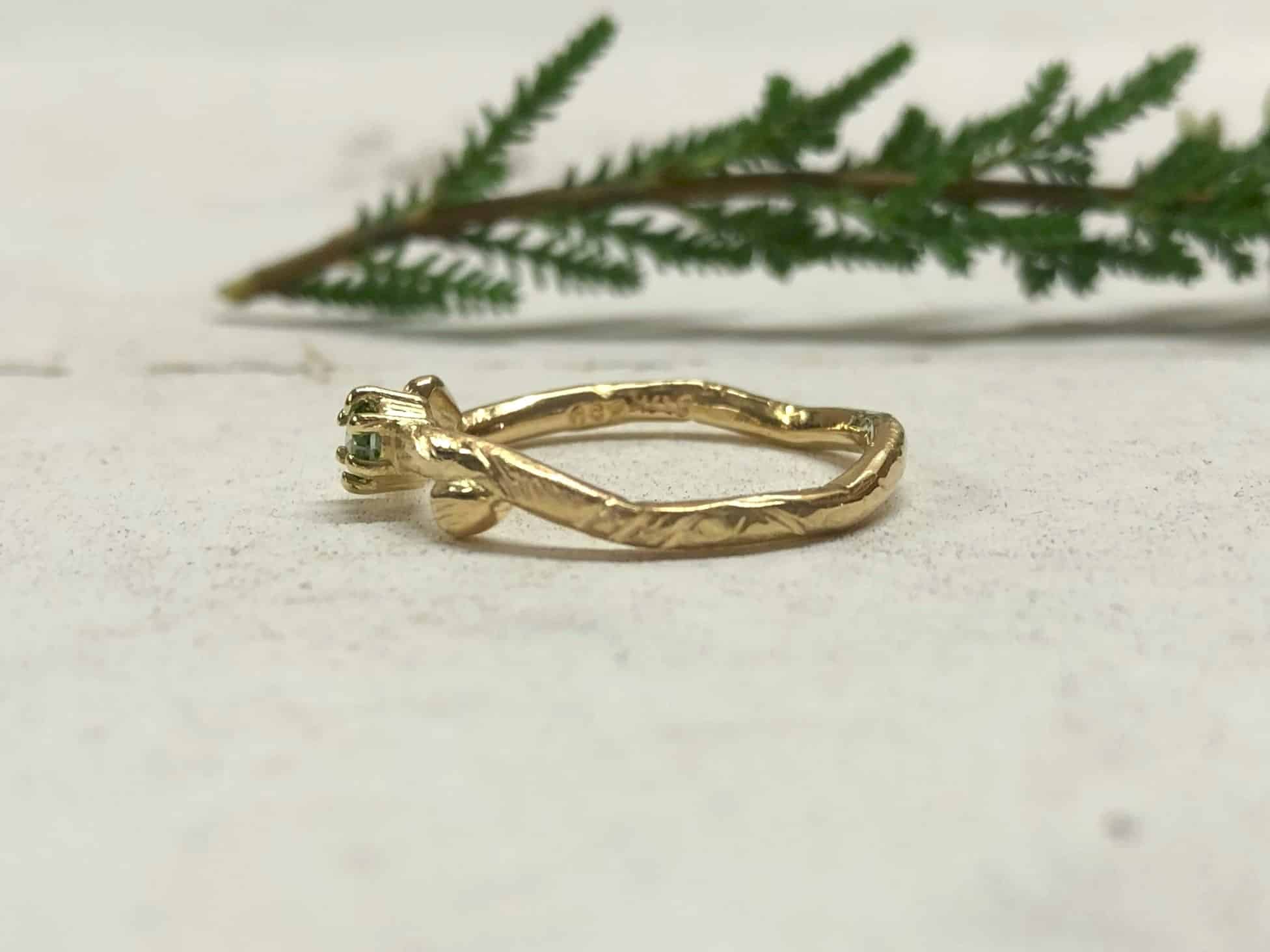 Ring mit Blättern und grünem Stein „Verdea“