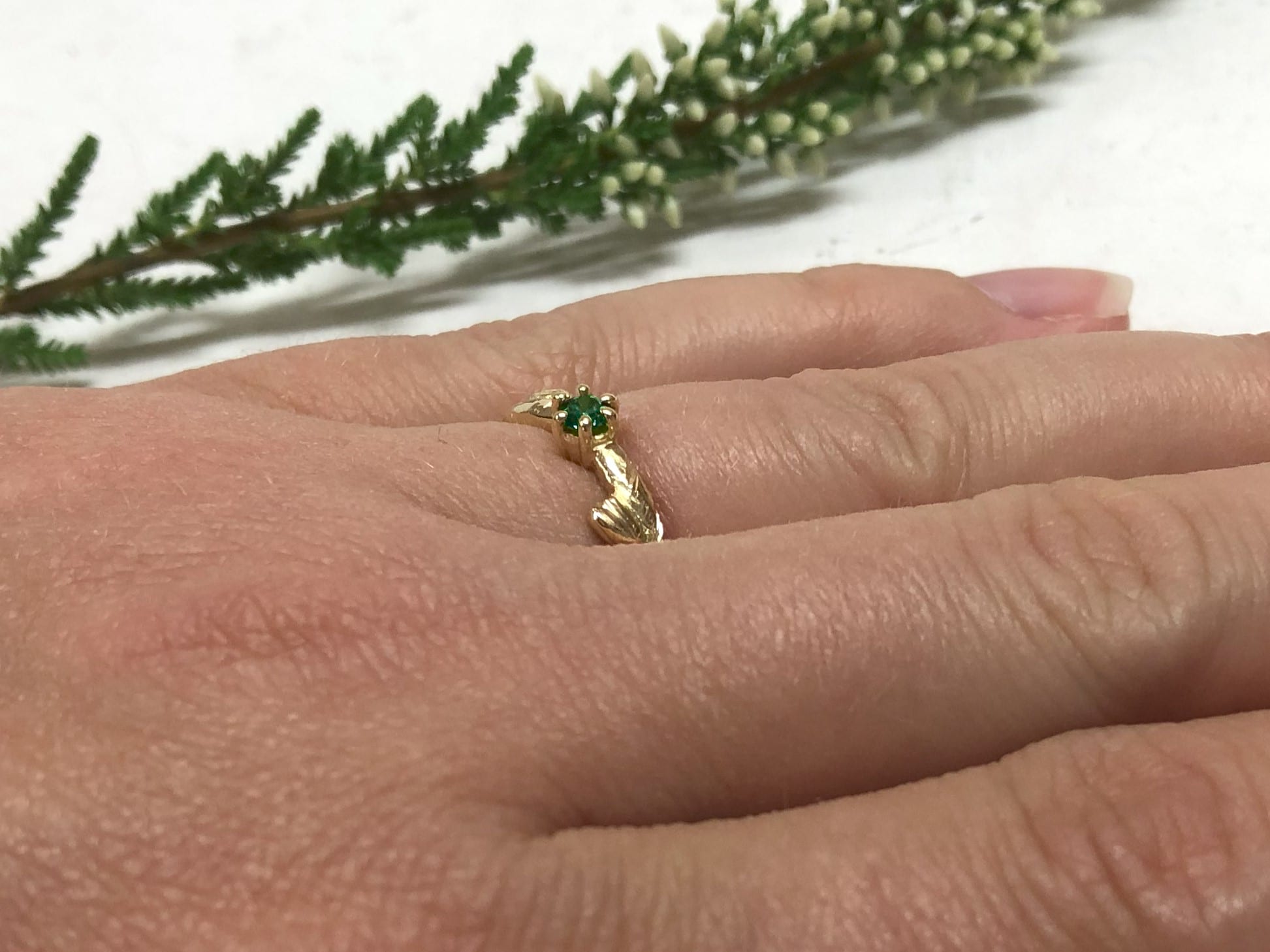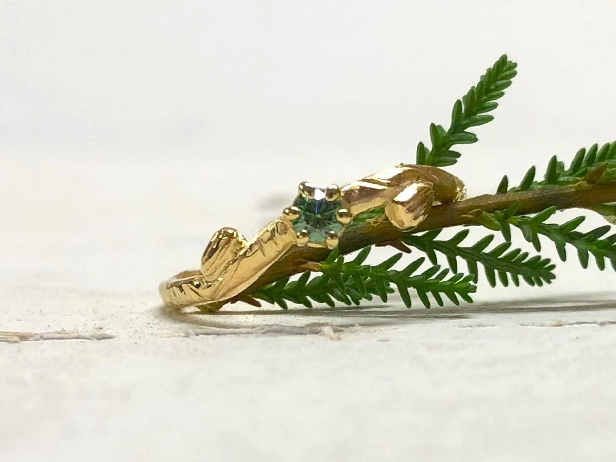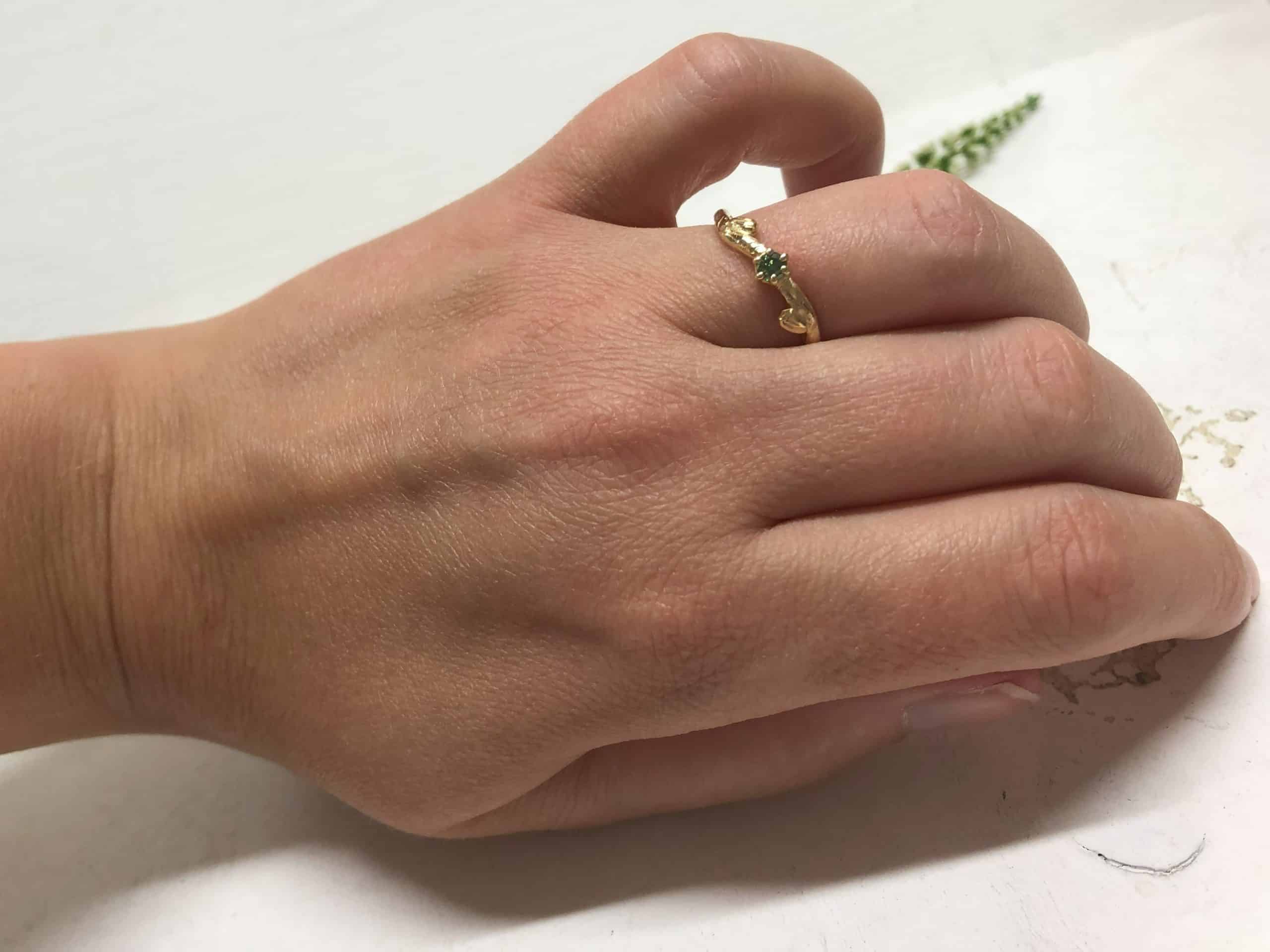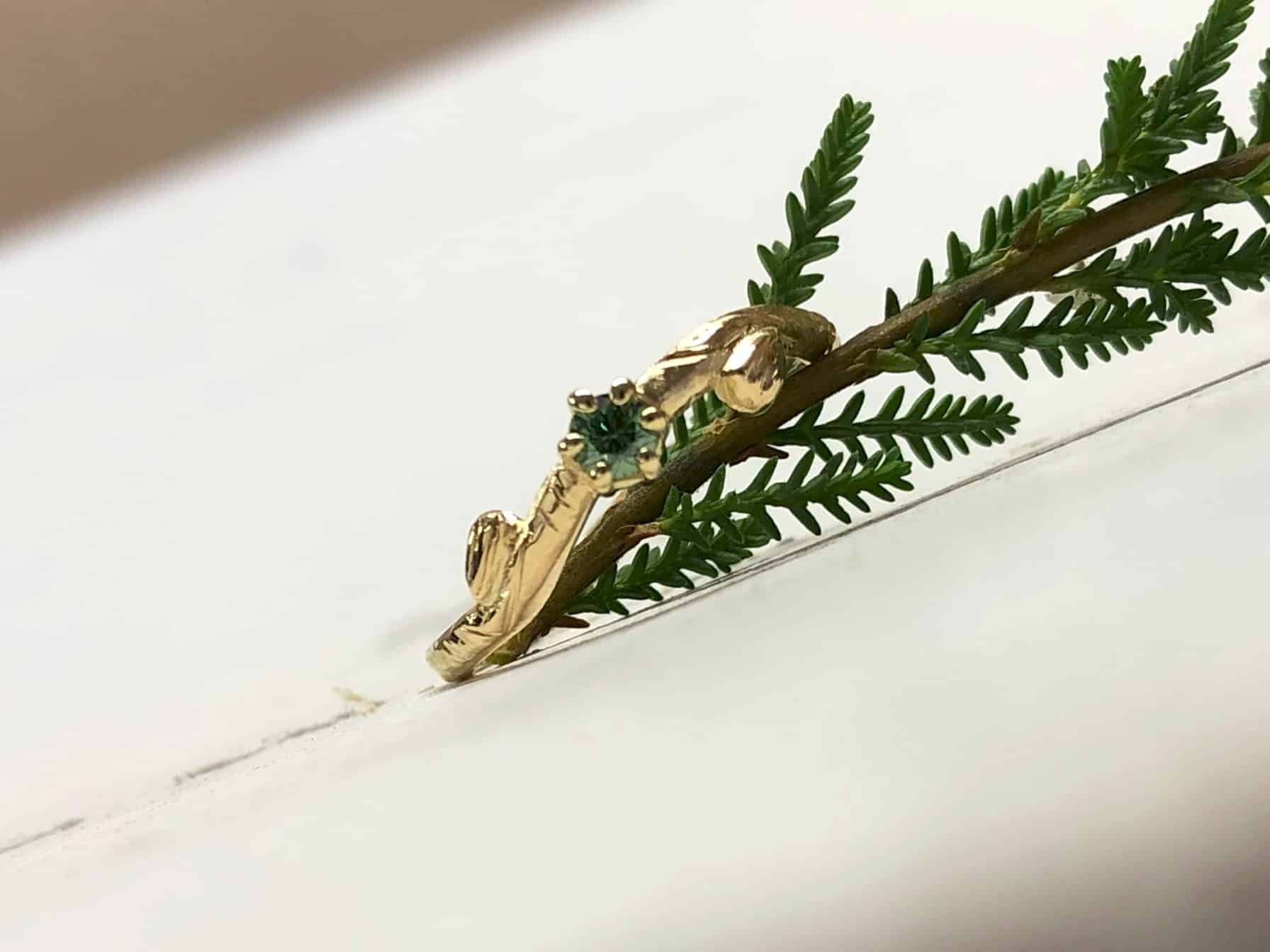 Ring mit Blättern und grünem Stein „Verdea“