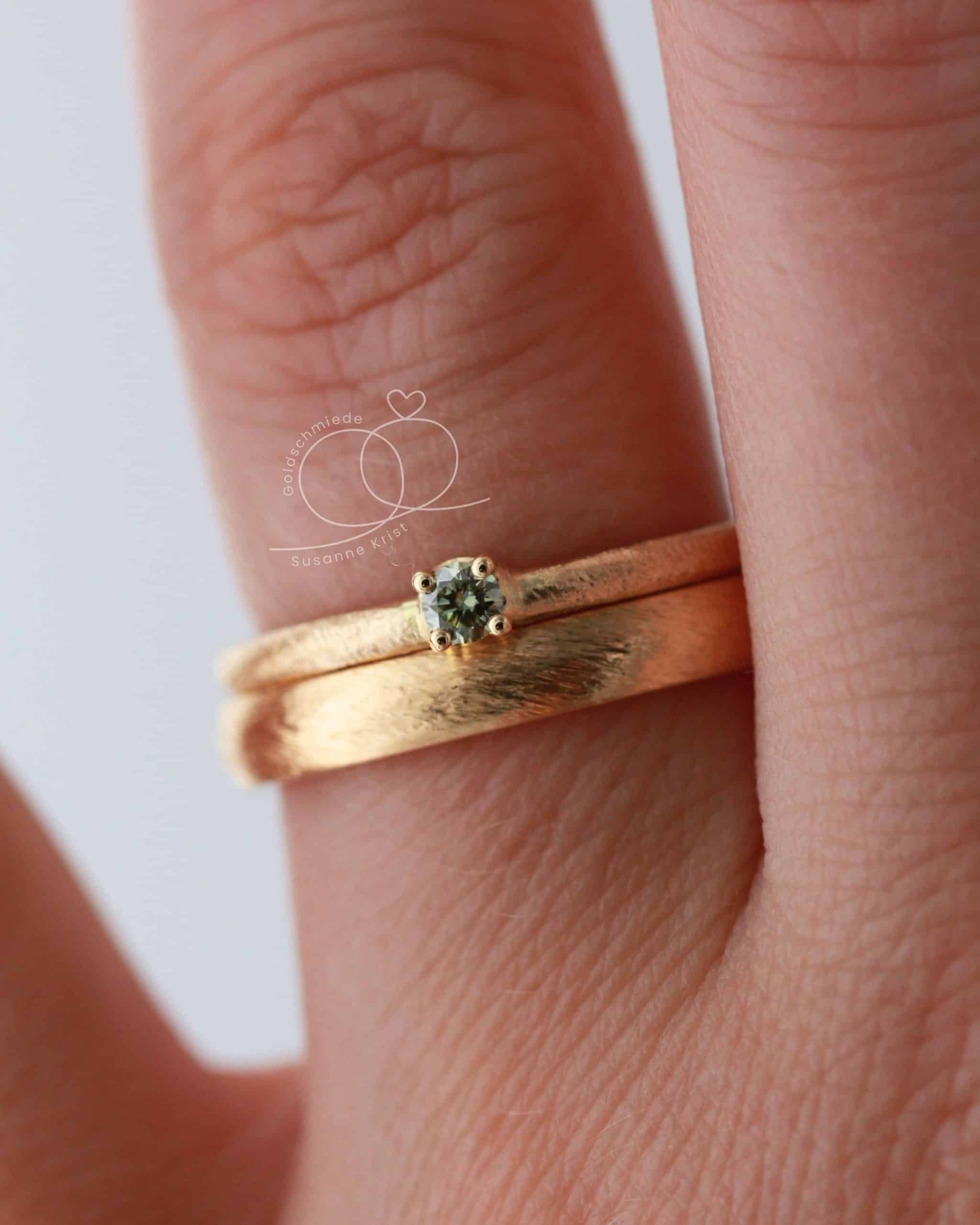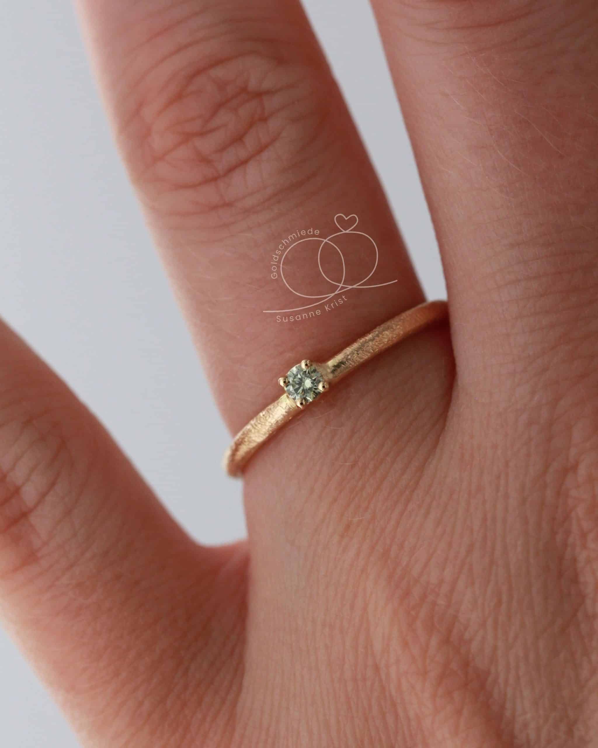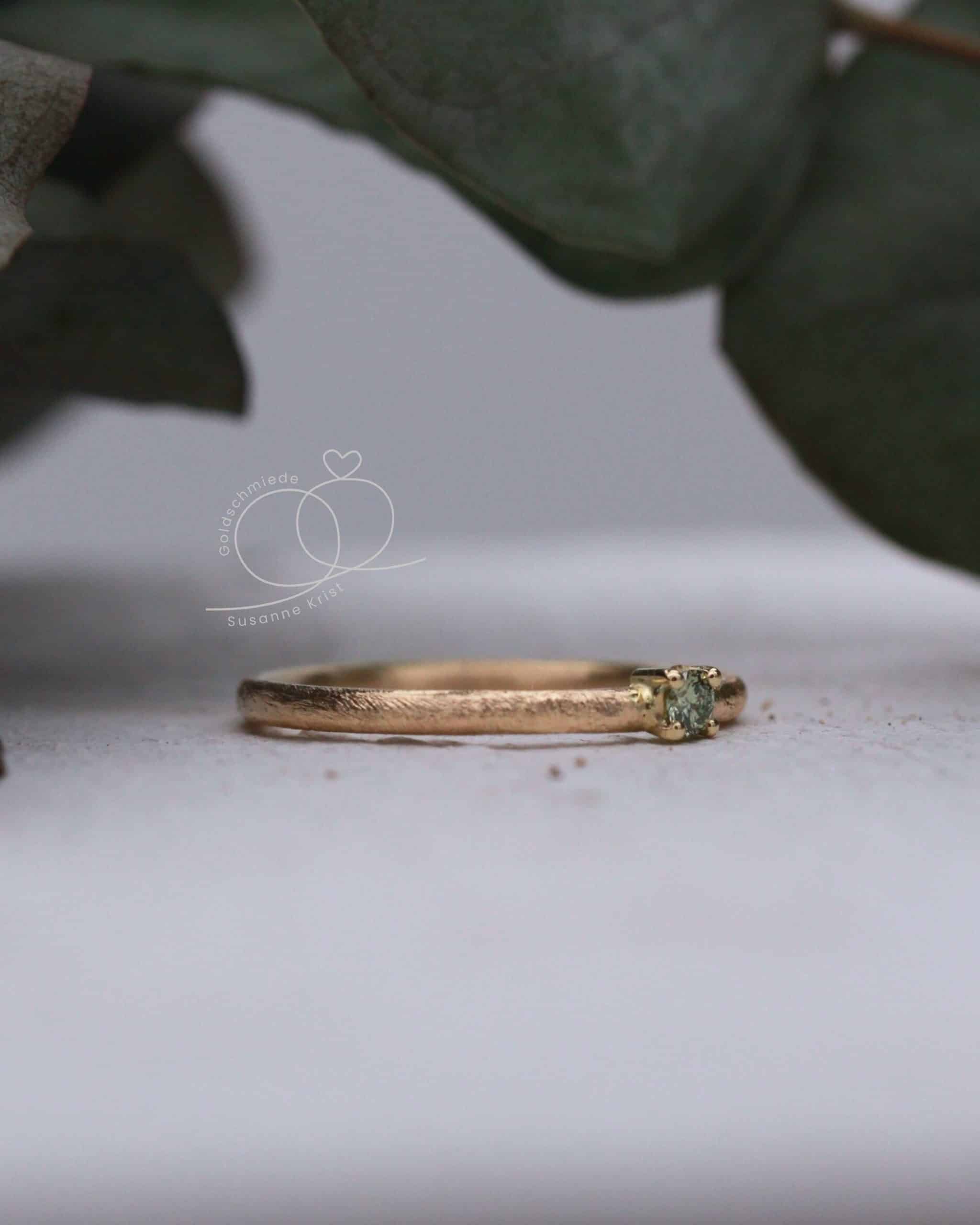 – Natürlicher Verlobungsring trifft grünen Stein.