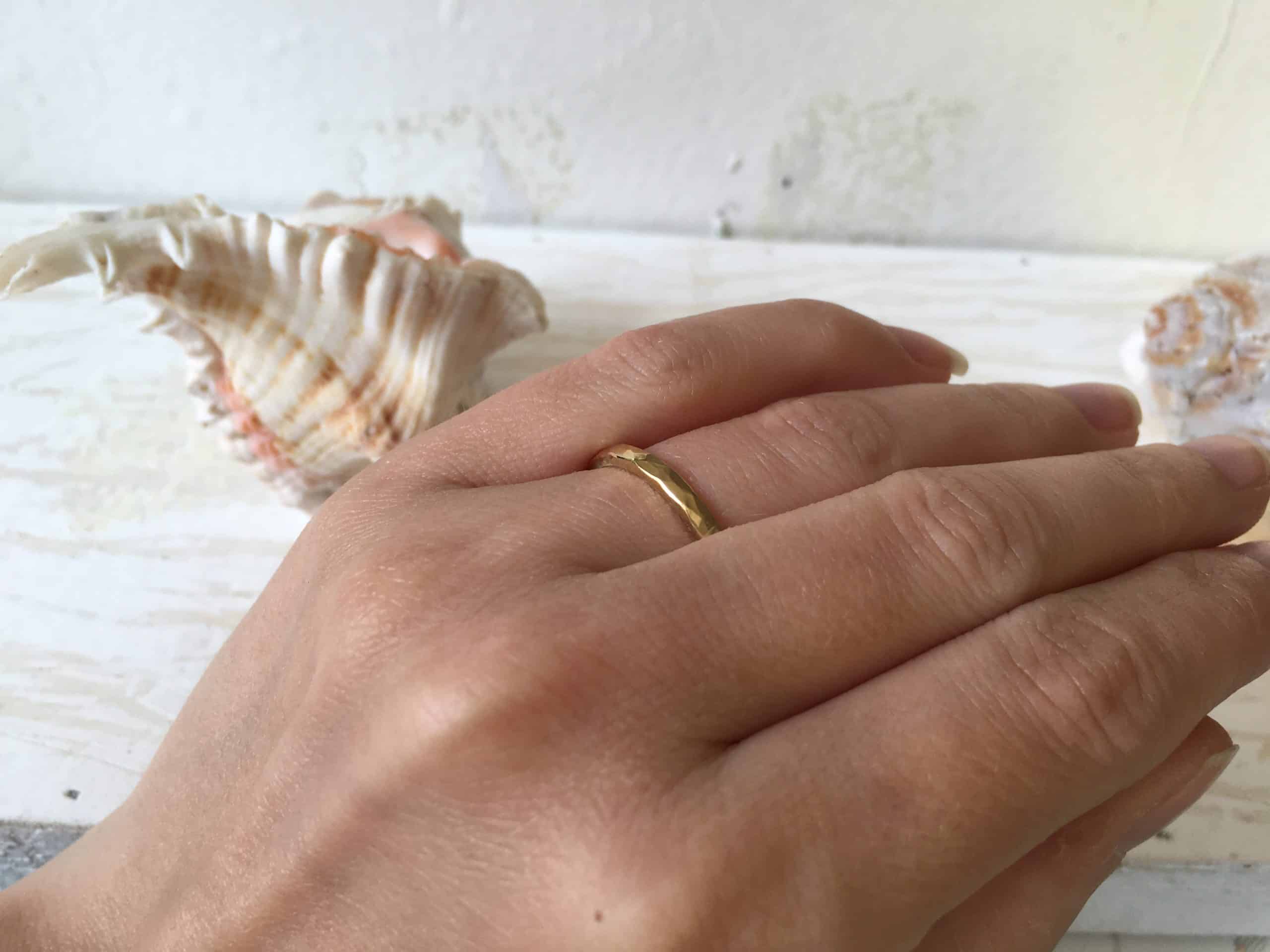 Der geschmiedete Ring ist ca. 2,2 mm breit, und ca. 1,7 mm stark und lässt sich bequem tragen.