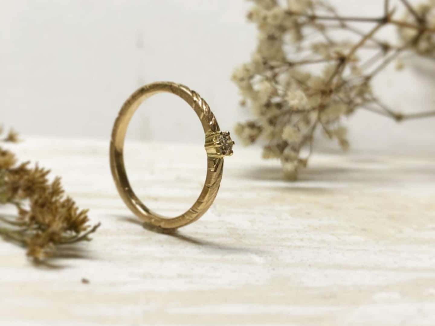Der florale Verlobungsring mit Holzoptik Vivina ist ein goldener Verlobungsring mit Stein. Gerne erzählen wir dir mehr über dieses sehr beliebte Modell mit Struktur.